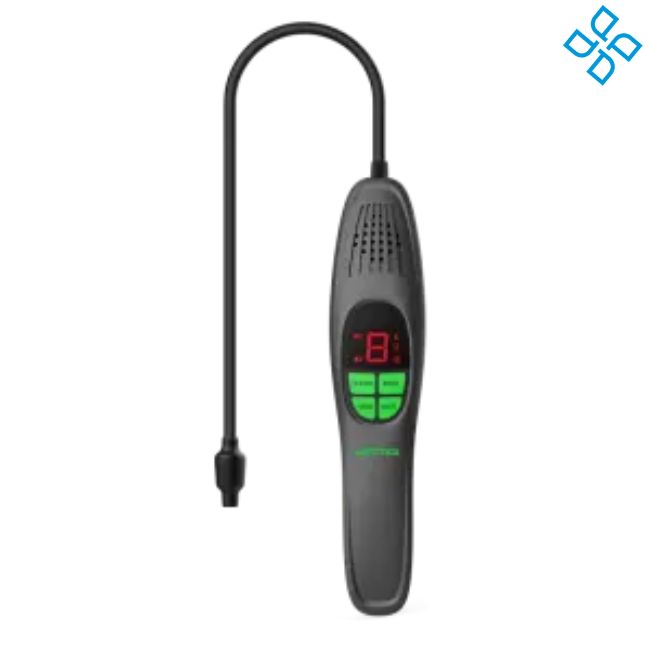 This refrigerant leak detector is compatible with CFCs, HCFCs, HFCs, HCs, and HFOs, making it suitable for a wide range of HVAC and refrigeration systems. In addition, its sensor has a lifetime of ≥1 year, reducing replacement costs. Furthermore, the flexible 420mm probe provides easy access to hard-to-reach locations, improving usability in complex setups.
